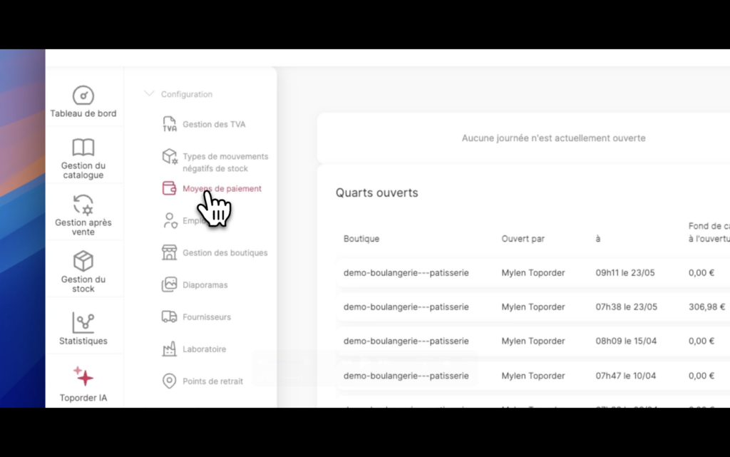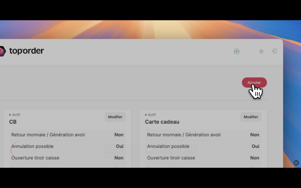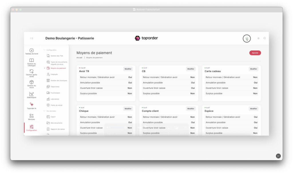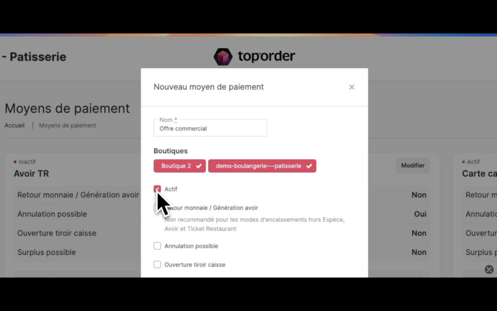 Le nouveau moyen de paiement est ajouté et actif sur la caisse.