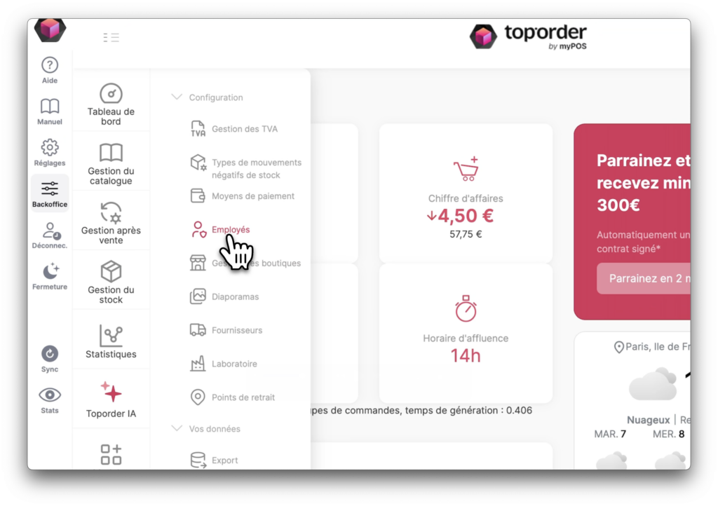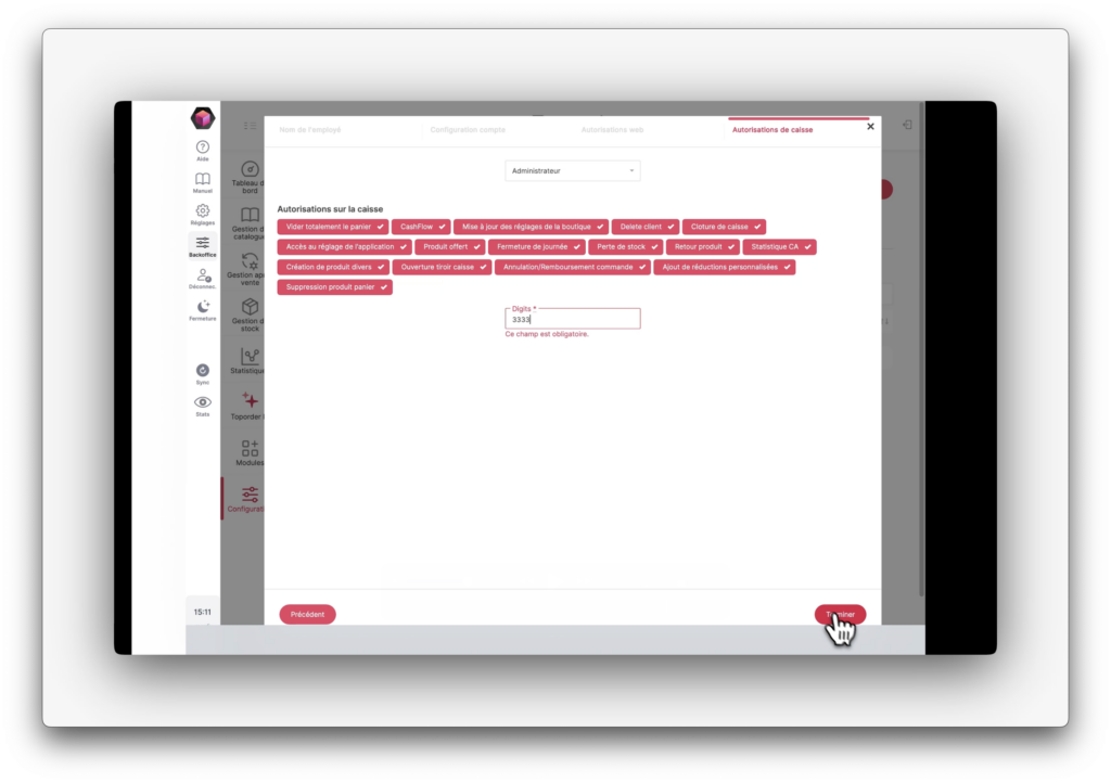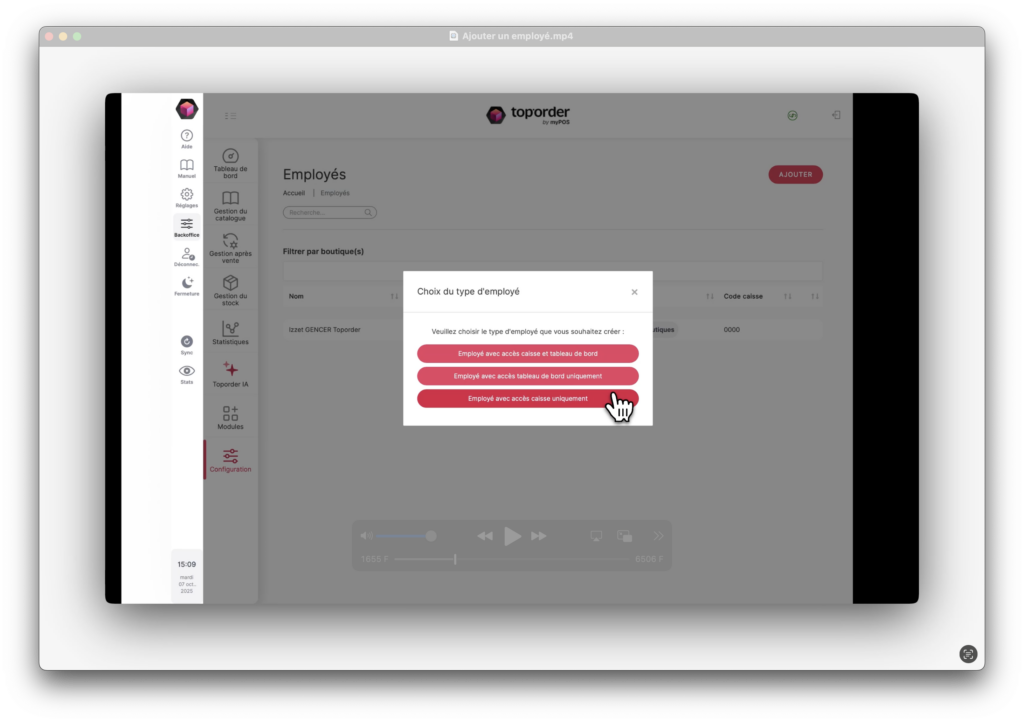 Un nouveau compte employé est créé avec les accès configurés selon son rôle.