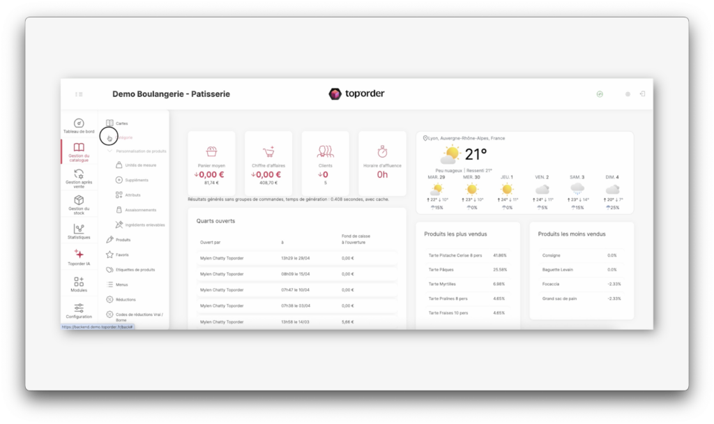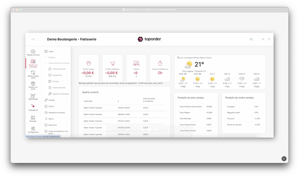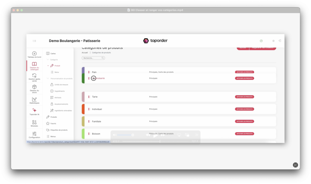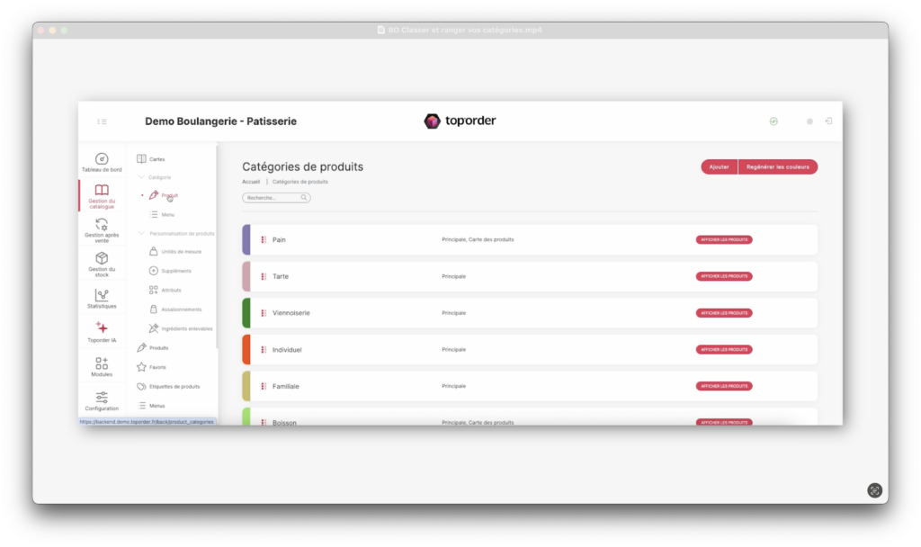 Les catégories apparaissent sur la caisse dans le nouvel ordre défini.