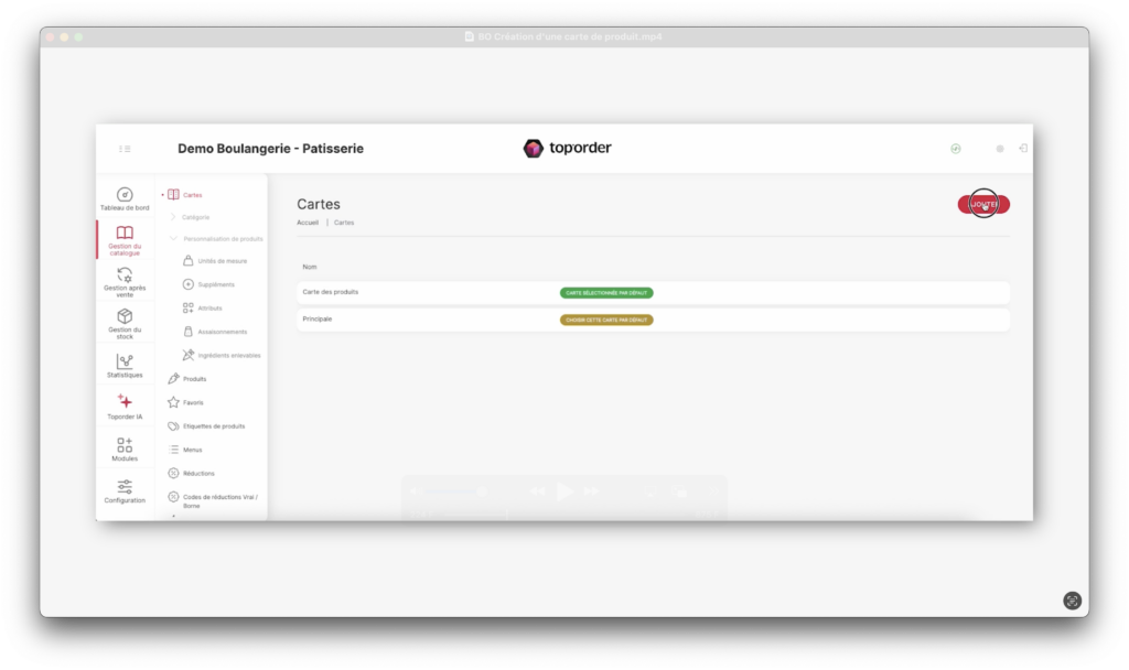 1. Aller dans le Back Office > Gestion du catalogue > Cartes.