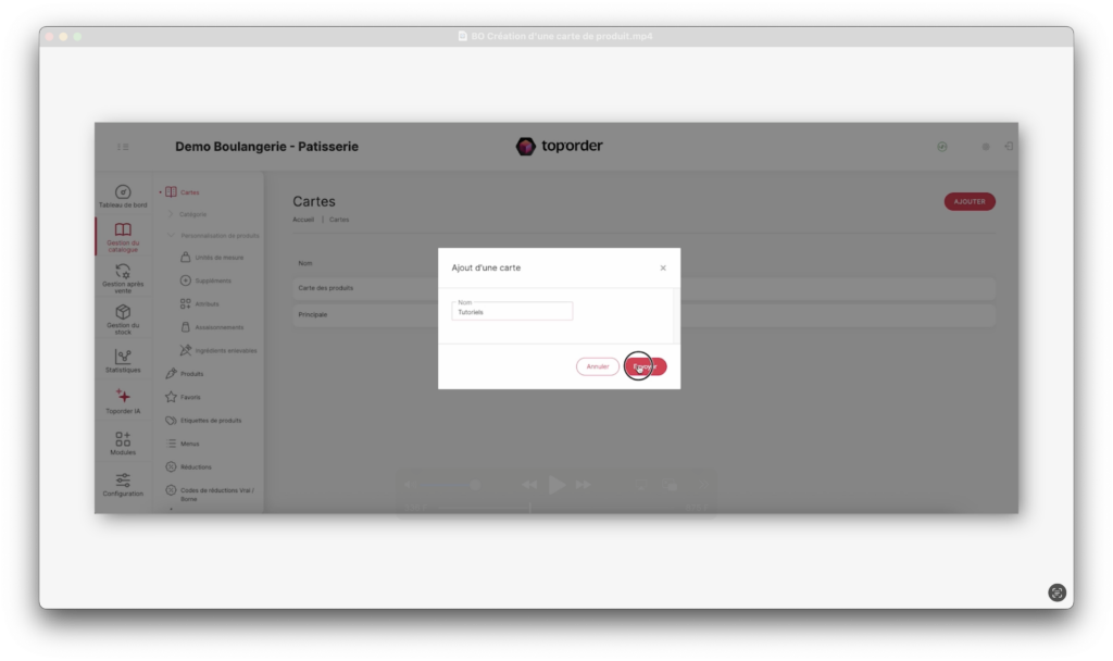 1. Nommer la carte (ex. Carte des produits).