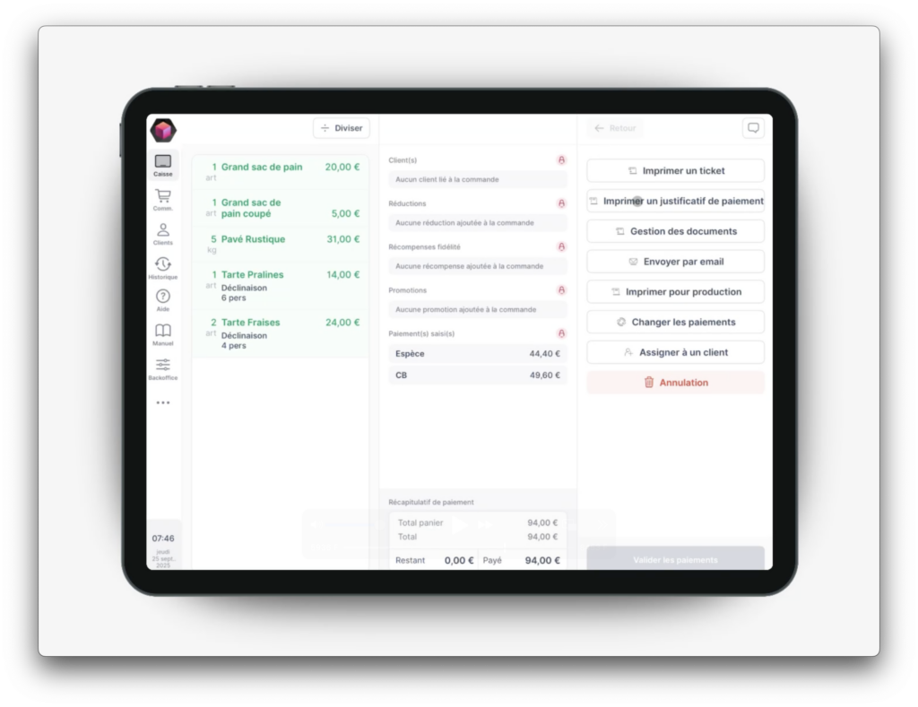 Chaque client dispose d’un justificatif de paiement distinct correspondant à ses produits.