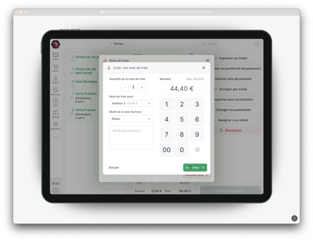 Division de note focus par produit avec justificatif adapté – V2
