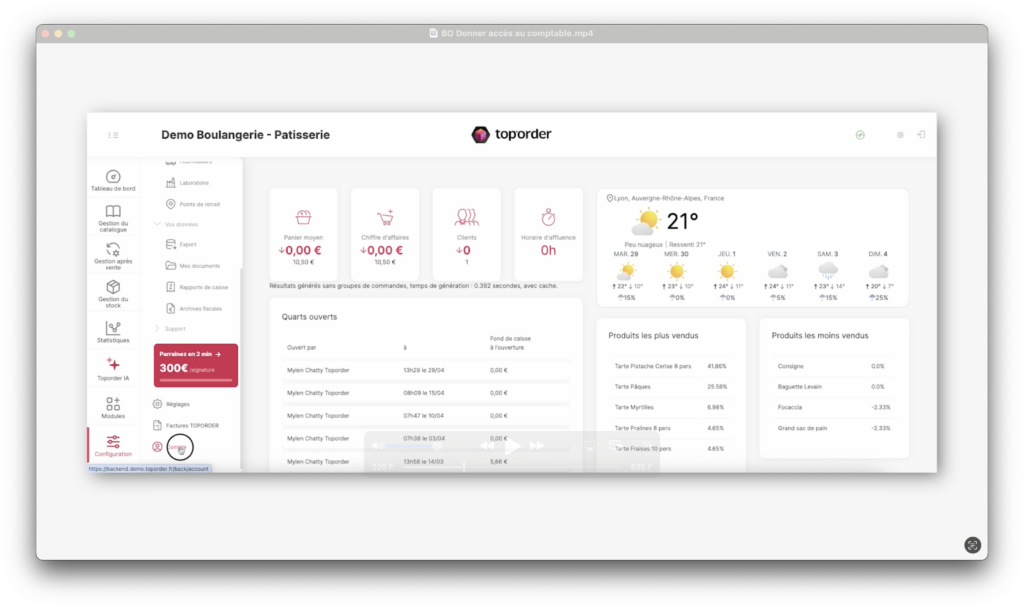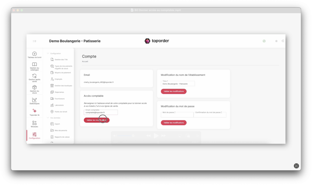 1. Le comptable recevra un e-mail contenant ses identifiants et l’URL d’accès au back-office.