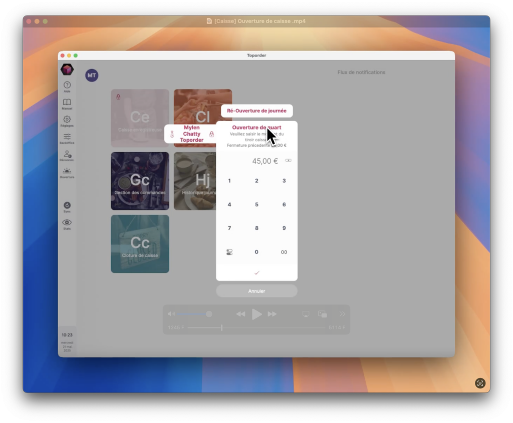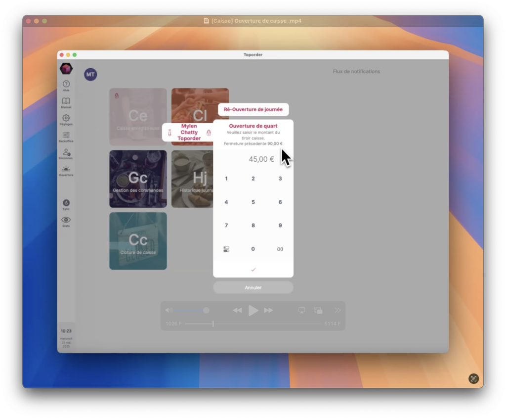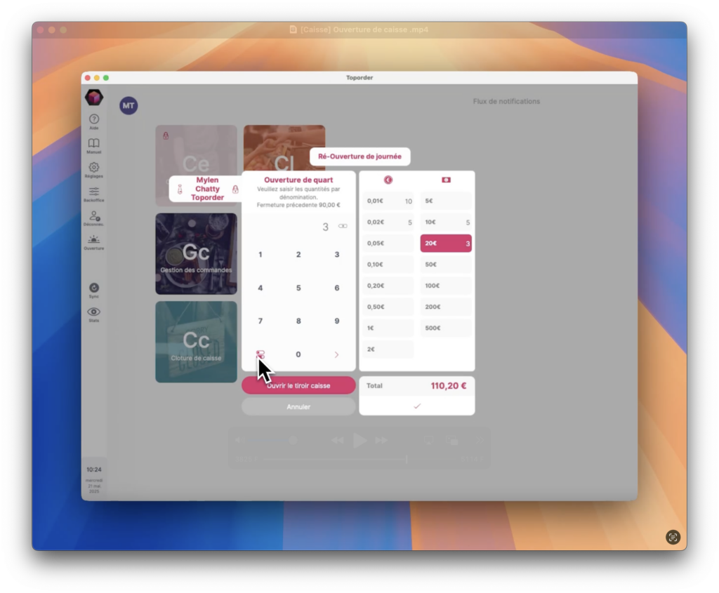 1. Cliquer sur le bouton ‘Ouverture’ lorsque la journée est fermée.